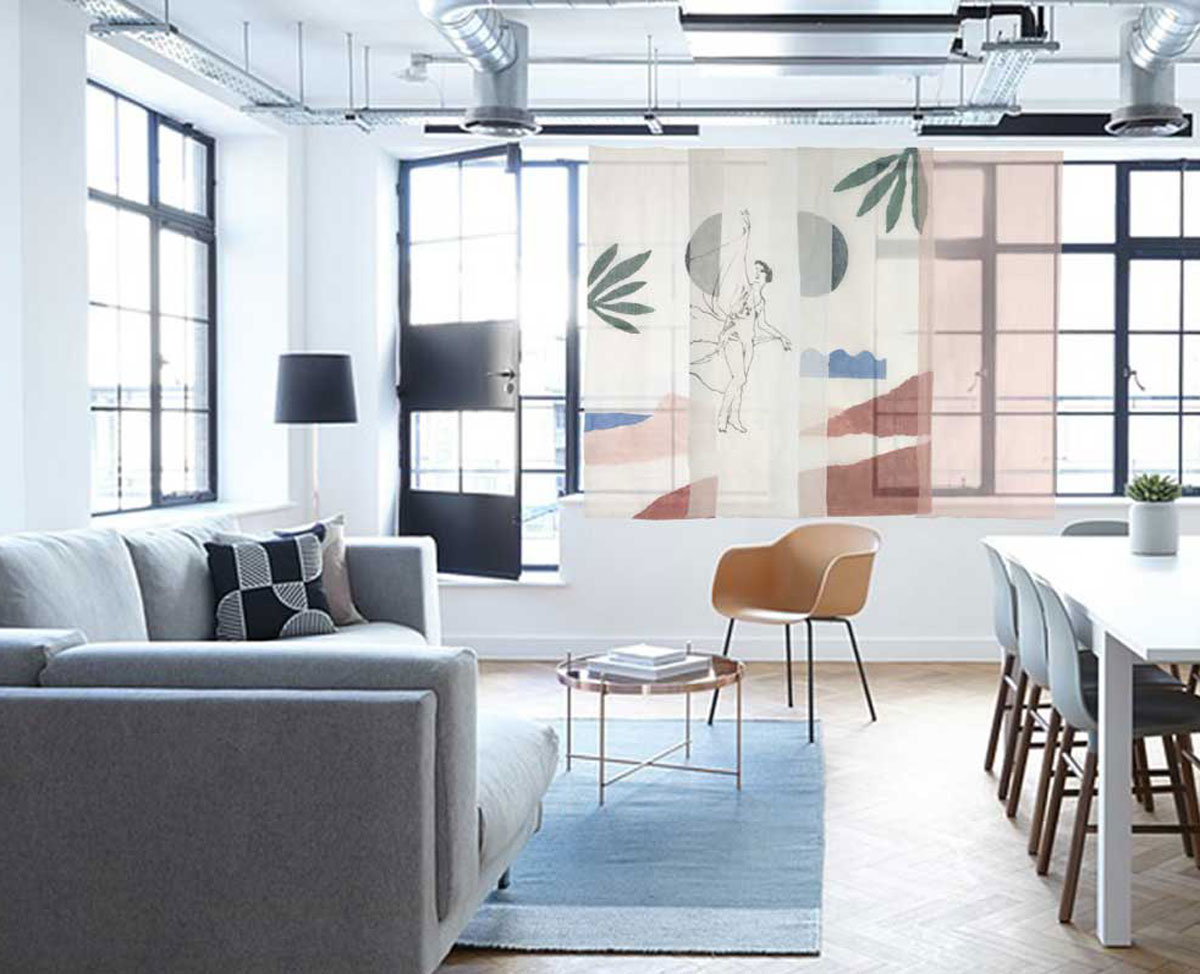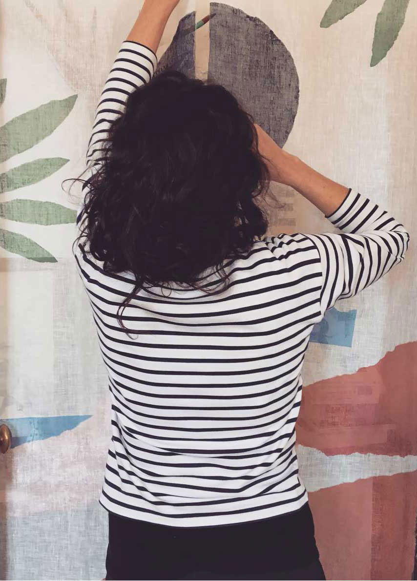 Fruit de notre collaboration avec l’architecte d’intérieur Cécile Derrien, ce tryptique est composé de 3 panneaux en lin peints et sérigraphiés à la main. Entièrement modulables, ils peuvent être montés sur des rails et utilisés en store japonais, séparateurs d’espace, tenture murale ou en rideaux.