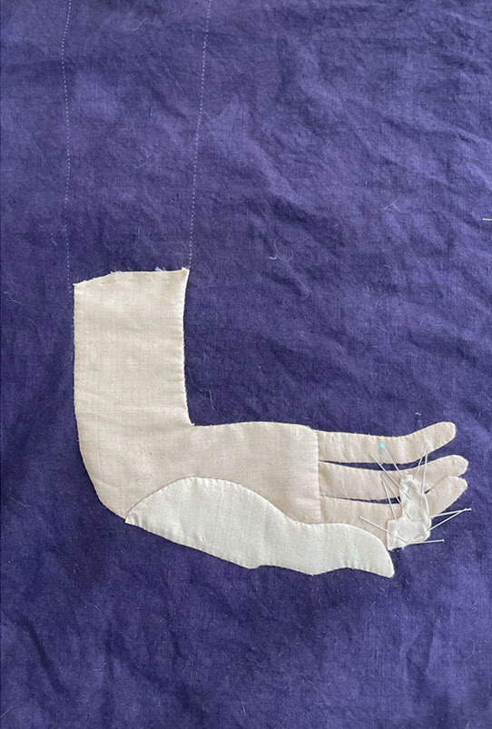 Composition : sérigraphie manuelle 4 couleurs sur coton/lin, empiècements en velours de coton